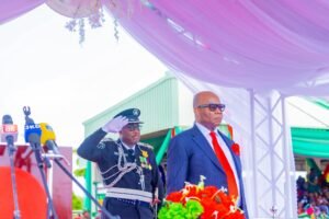 Wakilin Shugaba Bola Tinubu , Shugaban Majalisar Dattawa Godswills Akpabio a wajen bikin Faretin da Hukumar Kadet na 73 Regular Course, Short Service Course 48 Army, Direct Short Service Course 33 Air Force, da Reshe Commission 2 Sojojin Sama a Makarantar Tsaro ta Najeriya ranar Asabar.